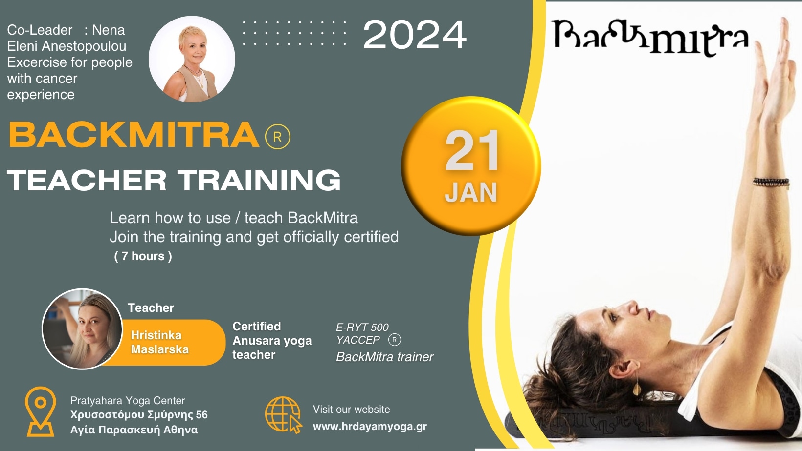 BackMitra ® Teacher Training Με την Hristinka Maslarska Γιατί να παρακολουθήσει κάποιος το training?  Αυτό το training θα εμπλουτίσει και αναβαθμίσει ό,τι κάνεις και ταυτόχρονα θα αλλάξει την ποιότητα ζωής